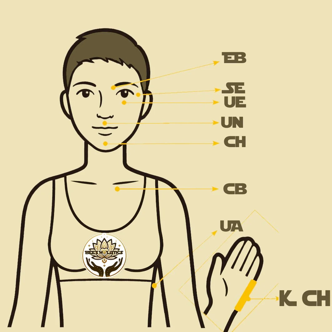 4. Move through a few tapping points, repeating words that feel true, or simply tapping if words won’t come. Tapping without phrases can ease tension too. That’s the beauty of working with the meridian system.